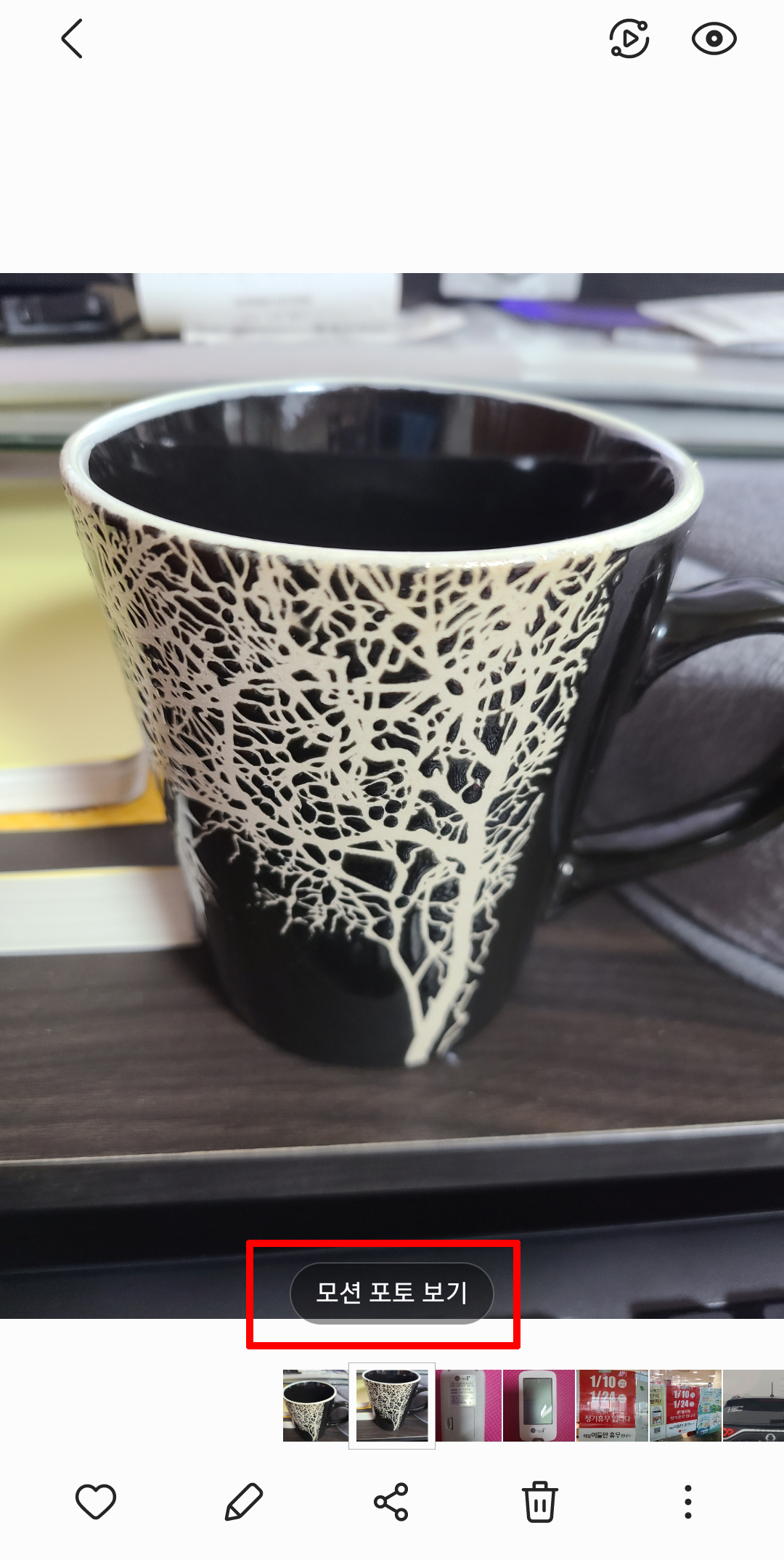 갤러리에서 내가 찍은 사진을 선택해주면 사진 아래에 모션 포토 보기를 클릭해줍니다