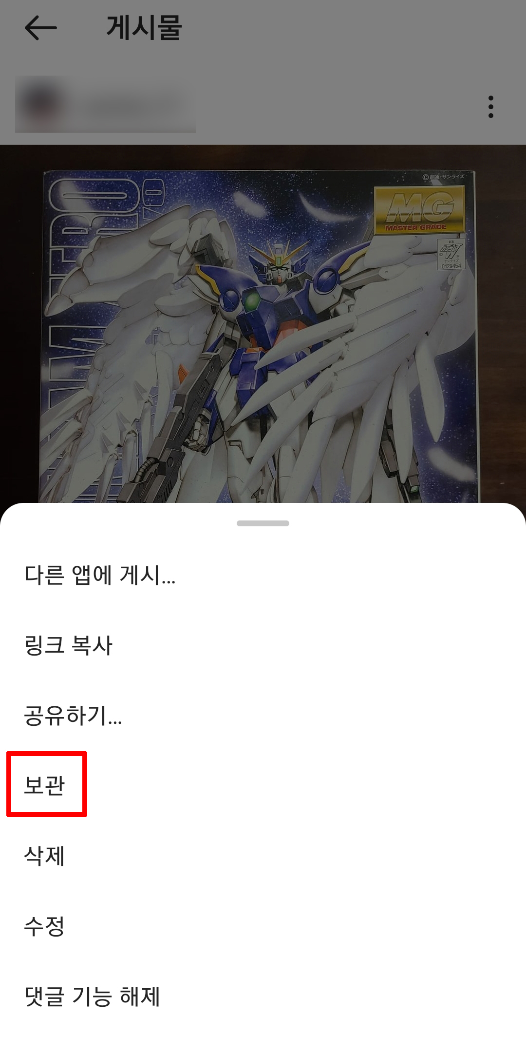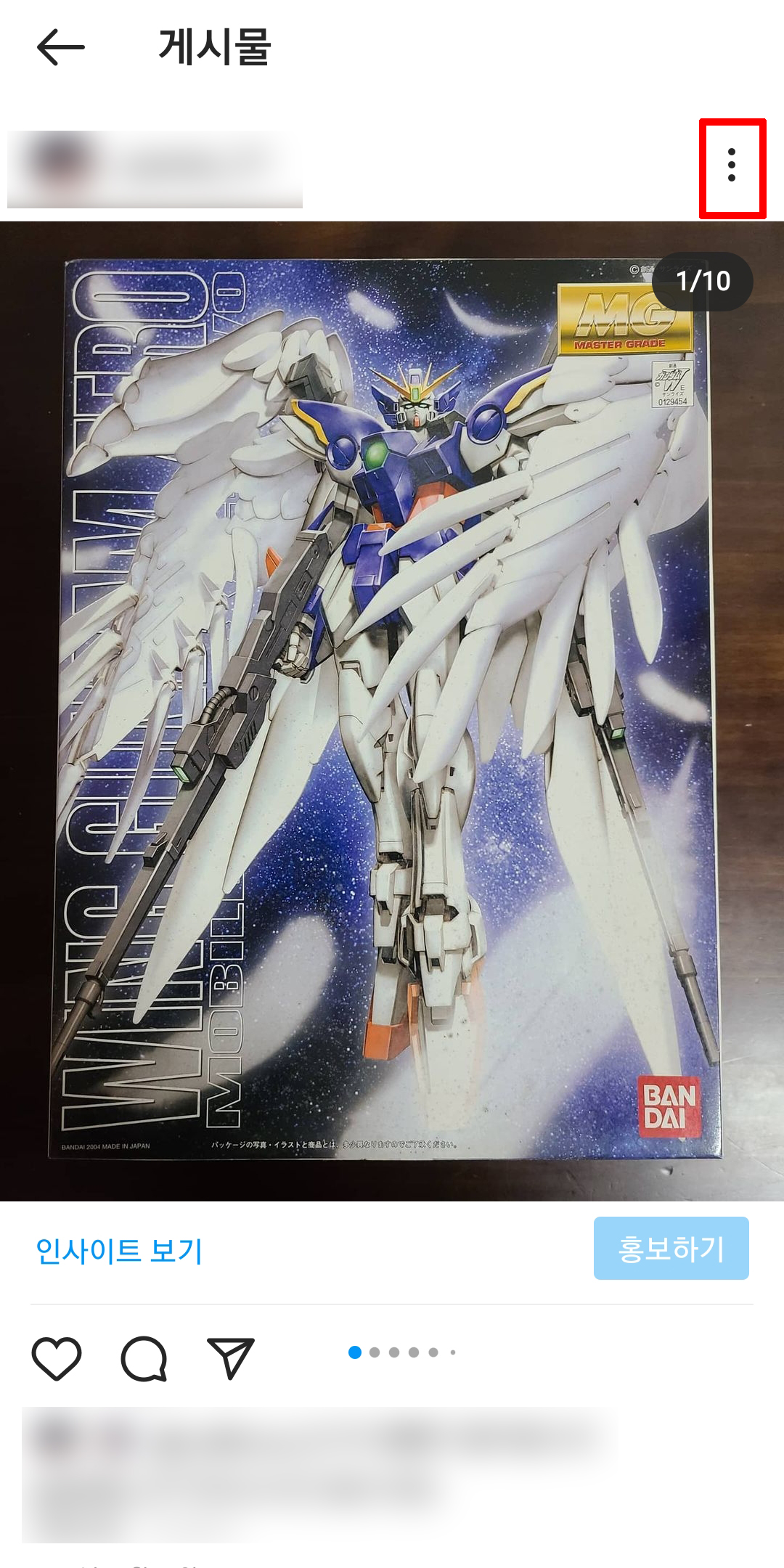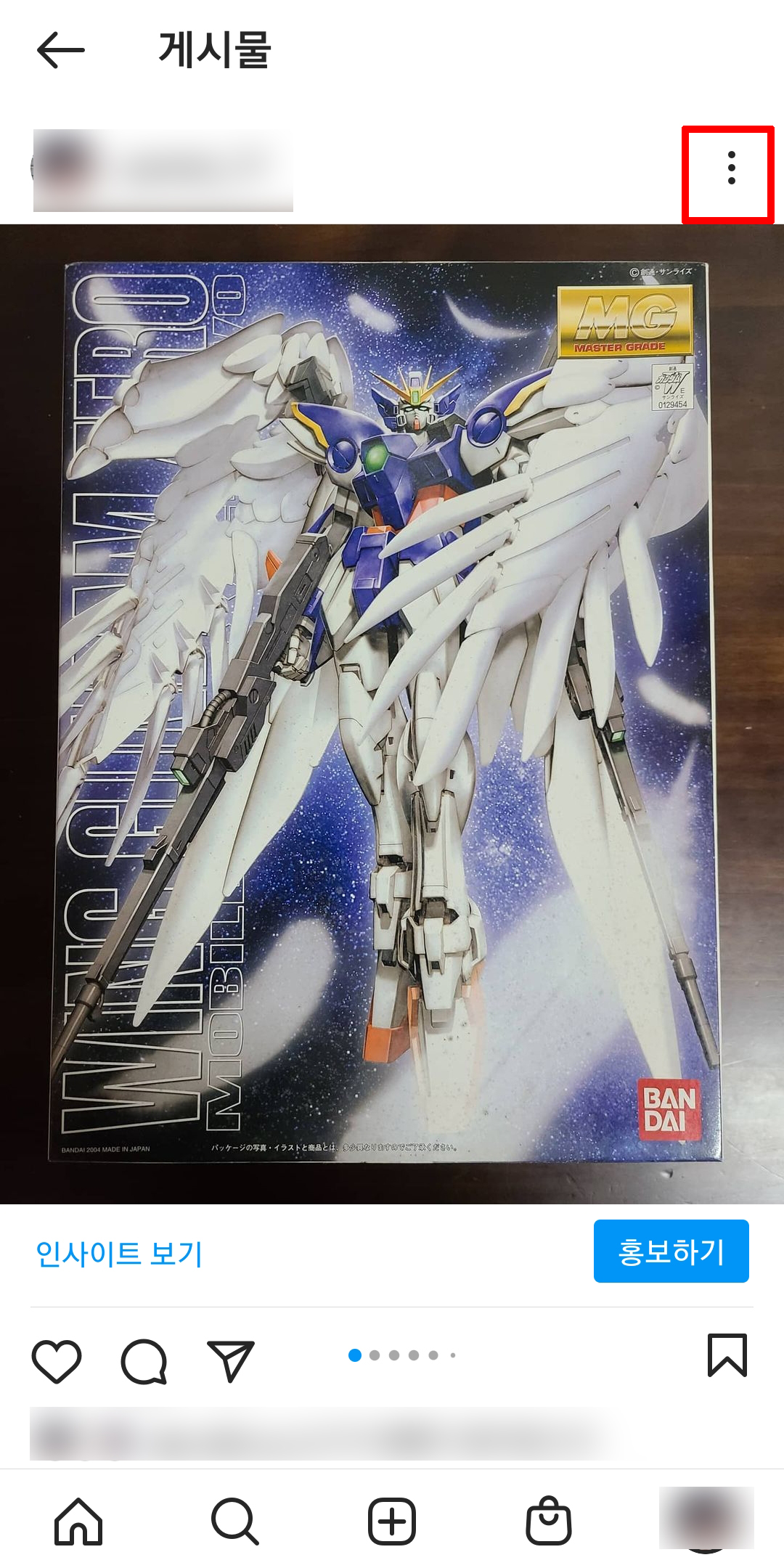 게시물 오른쪽 위에 점3개 아이콘을 클릭합니다